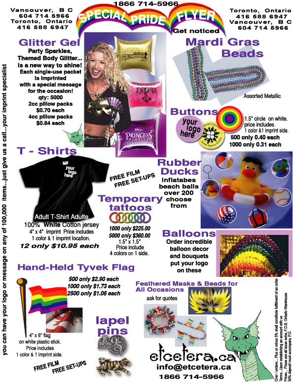 Welcome to the etcetera homepage. Your one stop shop for custom imprinted promotional products and garments. Looking for promotional product ideas,...custom uniforms.... feel free to browse through our online catalogues We are getting new items every day last count about 300.000 items and about 3000 suppliers Contact your etcetera account representative who will be pleased to provide you with more assistance. |